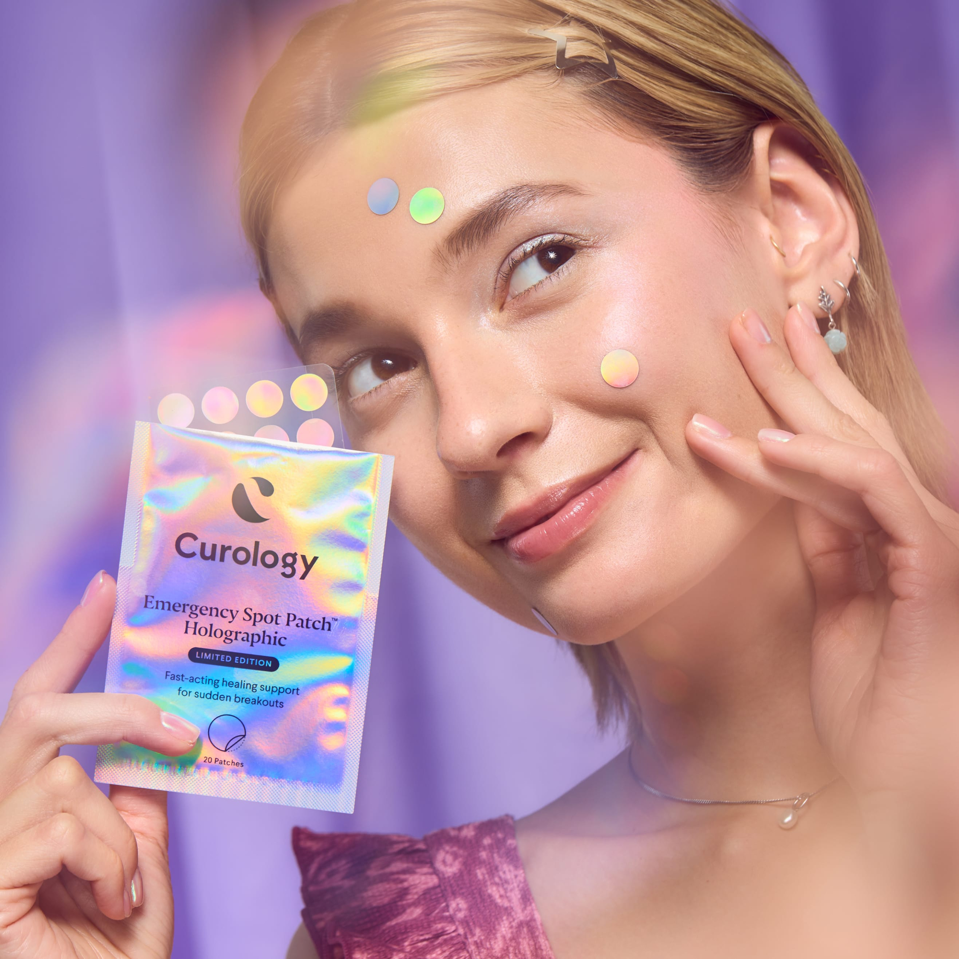 Tackle surprise pimples with our hydrocolloid patches—designed to help protect skin, while drawing out fluid and oil for visible results in as little as 8 hours*. Stand out and turn your spots into your best accessory with our limited-edition holographic design. *In a 33-subject consumer questionnaire, 88% of subjects said they saw results after 8 hours of wear.